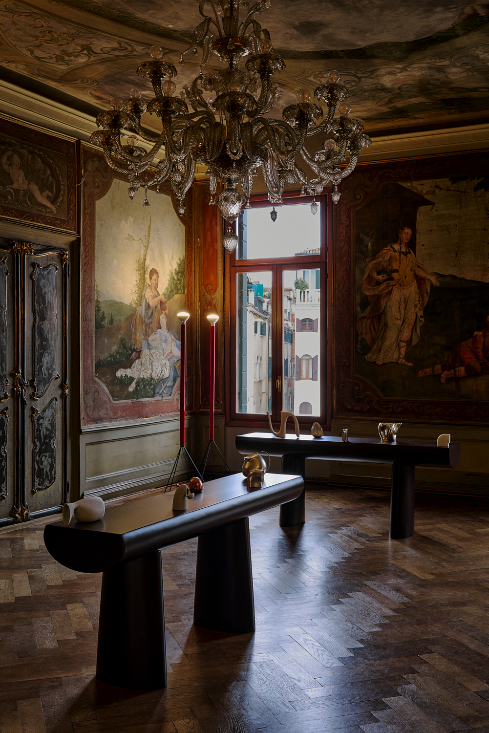 La Società delle Api presents the exhibition ON DISPLAY! curated by Annalisa Rosso and featuring nine international designers and design studios. Aldo Bakker, Valentina Cameranesi Sgroi, Formafantasma, Martino Gamper, Odd Matter, Parasite 2.0, Soft Baroque, Bethan Laura Wood, and Zaven have been invited to Palazzo Lezze Michiel—the Venetian home of Silvia Fiorucci, founder and president of La Società delle Api—to reflect on the theme of the display as an interpretative act, one which is never neutral, designed to guide both perception and meaning.
